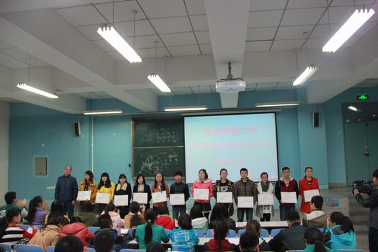 在颁奖仪式上,副书记副校长万明钢宣读了《关于表彰奖励2016届师范类毕业生教学大赛优秀个人及优秀组织单位的决定》,并代表学校对校级决赛评委专家的辛勤劳动表示衷心感谢,对获奖学院及学生表示祝贺。他对学校2016届师范类毕业生教学大赛给予了高度评价,对大赛组织工作给予了充分肯定,并对学校的教师教育工作提出了新的要求。他指出,大赛的举办正值2016届师范生教育实习归来,大赛紧紧围绕 “高举师范教育大旗,培养卓越人民教师”主题,进一步凸显学校教师教育特色,着力于师范生人文情怀、国际视野、系统思维、批判思维和信息化能力的培养,2016届师范类各专业同学全体参与,以校院两级教学比赛的形式全面总结师范生教师专业能力训练和教育实习工作,从实习话感想演讲、教案设计、多媒体课件制作、教学综合技能等方面对参赛选手进行了全面考察,展示了我校师范生的综合素质。随后,副书记副校长万明钢为获得大赛优秀奖的选手颁发了荣誉证书和奖品,刘仲奎校长为获得大赛一、二、三等奖的选手颁发了荣誉证书和奖品。