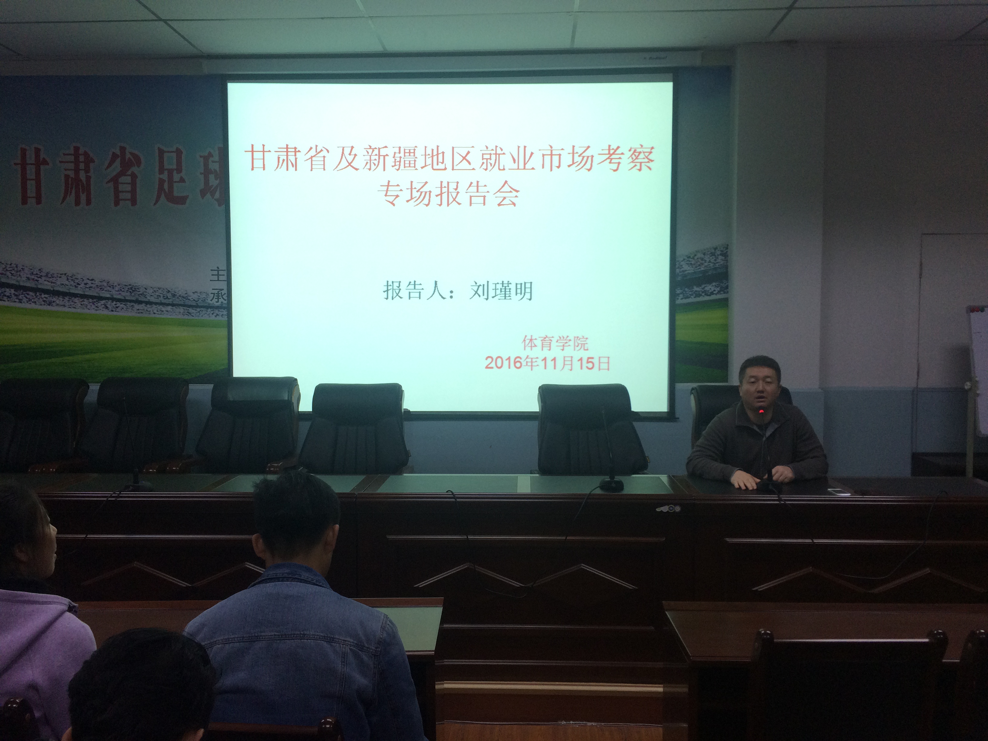 2016年11月15日下午16:30,在诸侯快讯ok1122登录入口多媒体室召开了甘肃省和新疆地区就业市场考察专场报告会。诸侯快讯ok1122登录入口2017届毕业生参加了报告会。会上,负责学院毕业生就业工作的刘瑾明老师对甘肃省内就业优势进行了分析和通报,特别就新疆就业市场的考察进行了详细的分析。刘老师从安全、气候、生活水平、就业单位待遇、交通等方面详细介绍了新疆特别是阿克苏地区就业的优势和不足,引导学生积极转变就业观念,拓宽就业地域,抓住“应届”毕业生这个优势为自己寻求一份满意的就业岗位。报告会后,刘老师在上次就业动员会的基础上,进一步讲解了签订就业协议书的注意事项,并就19号就业双选会做了详细安排。