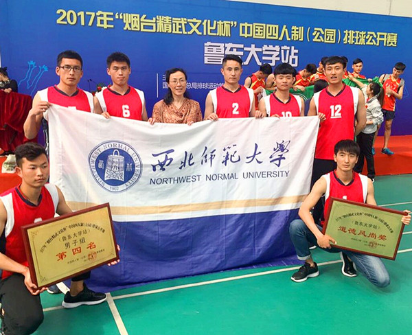 本次比赛在学校排球队主教练于飞老师的带领下,首次参加中国四人制(公园)排球公开赛,队员凭借着顽强的意志,不畏强手、敢打敢拼,经过2天37场紧张激烈的角逐,先后战胜郑州大学、苏州大学、河北师范大学,曲阜师范大学,取得了体育教育专业男子组全国第四的优异成绩。