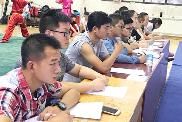 武术与民族传统体育系2016~2017学年第二学期期末考试于6月19日~20日在武术馆举行。考试采用了已成特色并保持多年的“考教分离”、“以赛代考”的考试形式及“规定套路” 、“竞艺武术”的考试内容,为学生提供了观摩学习、取长补短、奋力赶超的平台,并提升了研究生和大四学生的竞赛组织及执裁能力。