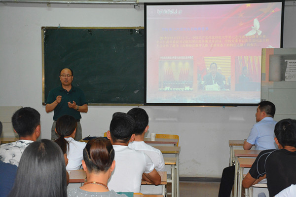 6月28日下午,学校党委委员、人事处处长王文昇研究员在学院三楼研究生教室为研究生党支部和本科生党支部学生党员上党课。共有47名学生党员参加党课学习。