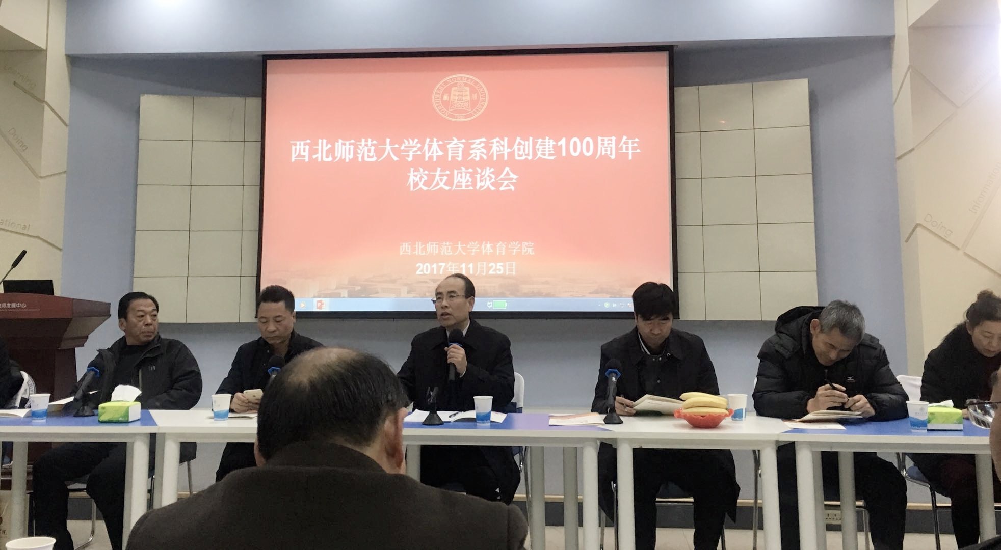 赵书记说,体育系科创建100年来,历经风风雨雨,一代又一代的西北师大体育人为了系科的发展,付出了艰辛的努力。100年来,从西北师大体育系走出了成千上万的毕业生,如今都在不同的岗位上为国家做出贡献。在这样重要的一个时刻,我们通过召开校友座谈会,就是希望能与广大校友面对面沟通、交流,缅怀前辈,继往开来,同时问计于校友,希冀能将学院各项工作做得更好。