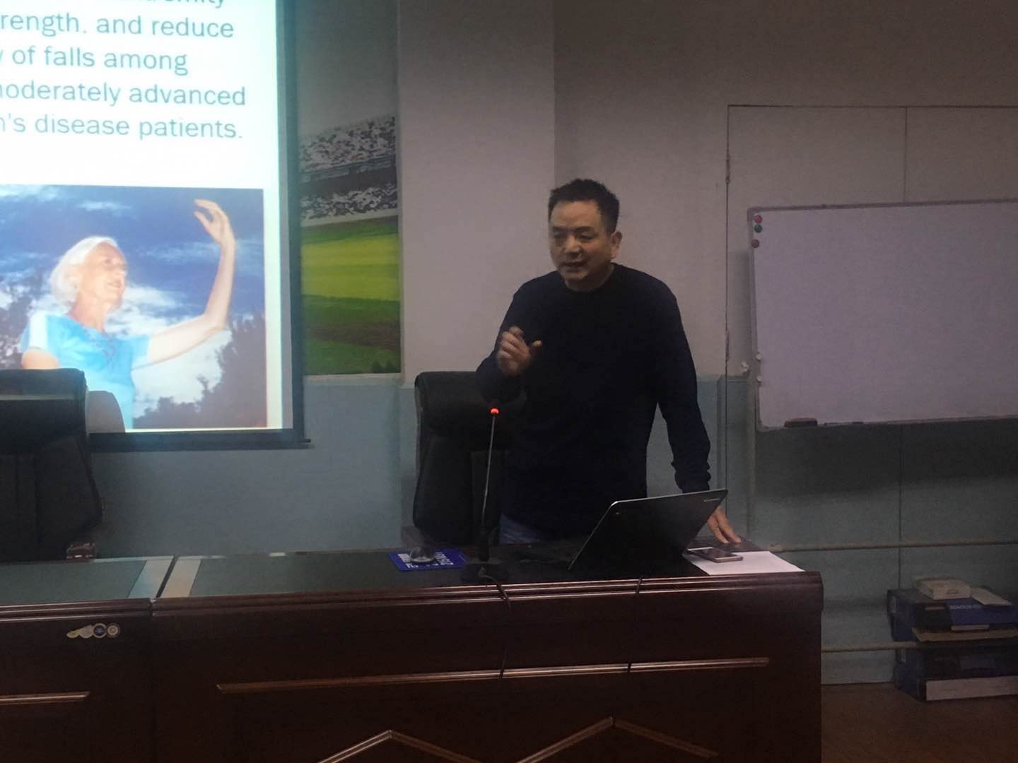 12月28日,诸侯快讯硕士生导师王宗兵副教授在6号楼124多媒体教室作了题为《太极拳增强PD患者姿势稳定性》的学术报告,学院研究生共100余人参加了本次学术报告。