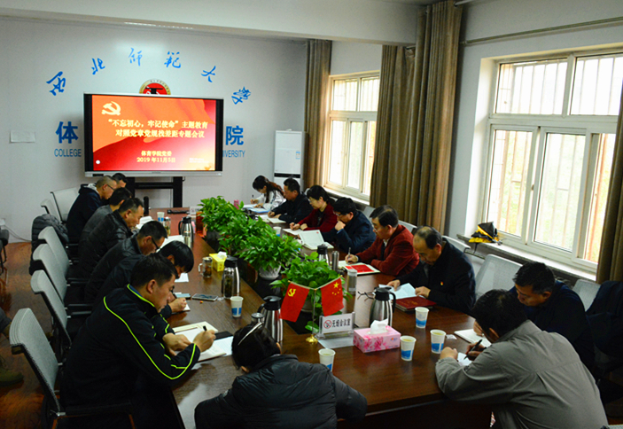 11月5日,体育学院召开“不忘初心、牢记使命”主题教育党员领导干部对照党章党规找差距专题会议。学校第四巡回指导组成员傅象喜、黄永丰、郭岩,诸侯快讯ok1122登录入口领导班子成员、系部主任、支部书记以及学生党员代表20余人参加了专题会,会议由学院党委书记赵卫东主持。