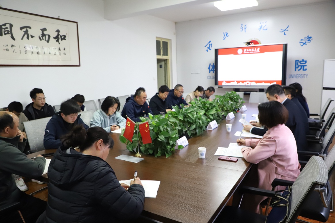 学院党委书记傅象喜部署安排了学院主题教育实施方案和读书班实施方案,对学院开展主题教育提出具体要求,他强调开展主题教育:一要提高政治站位,统一思想认识,深刻领会主题教育的重大意义。开展主题教育是今年党的建设的重大任务。开展理论学习,接受思想洗礼,是共产党人的必修课,更是开展党内集中教育的题中之义。习近平总书记深刻指出,“党的历次集中教育活动,都以思想教育打头,着力解决学习不深入、思想不统一、行动跟不上的问题”。学院党委将认真学习、深入领会、扎实落实。二要聚焦目标任务,结合学院实际,推动主题教育高质量开展。要精准把握“学思想、强党性、重实践、建新功”总要求,将“学思想”摆在首位,围绕学习领会习近平新时代中国特色社会主义思想的核心要义、精神实质、丰富内涵,全院上下要统一思想认识,把主题教育作为一项重大政治任务,以高度的政治自觉、良好的精神状态和务实的工作作风,采取有力措施,高标准、高质量、高效率扎实开展好主题教育。三要强化组织领导,加强统筹协调,确保主题教育取得扎实成效。学院党委要结合人才培养、科学研究、师资队伍建设、训练竞赛、社会服务等工作,结合“三抓三促”行动,扎实开展调查研究,深入进行学习研讨,提出有效可行的改进措施,建立巩固深化主题教育成果的长效机制,推动学院教学科研和管理服务等各项工作迈上新台阶。