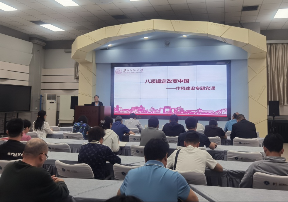 为深入学习贯彻党的二十大精神,扎实推进学习贯彻习近平新时代中国特色社会主义思想主题教育和“三抓三促”行动,驰而不息纠“四风”树新风,进一步增强广大党员干部和教职工廉洁自律意识,5月19日上午,学院党委特邀纪委委员、纪检监察一室主任李亚琴,作了题为“八项规定改变中国”作风建设专题廉政党课,学院全体教师党员和领导班子成员参加党课学习。