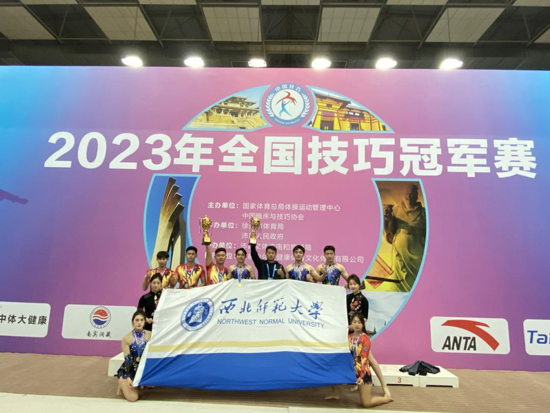 11月18日-11月21日,在江苏徐州举办的2023年全国技巧冠军赛中,我校杜一心、李天乐、张智程、马语泽在一级青年组平衡套、一级青年组动力套、一级全能套三个项目中获得金牌;宋佳徽、薛鸿博、赵玺皓、吕文萱在一级青年平衡套、一级动力套、一级全能套三个项目中获得银牌。在一级青年组大集体比赛中,我校运动员努力拼搏,在众多高校当中脱颖而出,获得冠军。