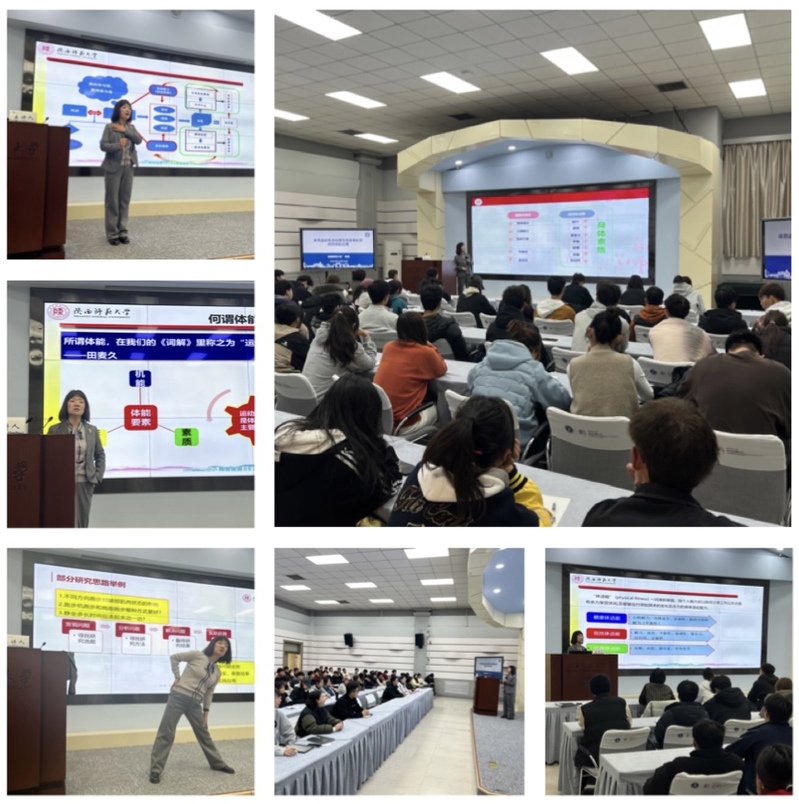 报告中,张婧教授从体能、体适能的概念及体育运动生活化的重要性出发,提出“运动零食计划”的新理念,以解决人们在日常生活中锻炼时间不足、运动强度较小的问题。张婧教授提示同学们,在科学研究中要从实践问题出发,尊重事实结果,反哺实践应用。