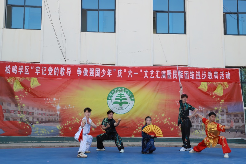 武术队参加了松明学区六一国际儿童节活动,虎虎生风的拳法、行云流水的剑术、气势磅礴的集体演练,瞬间点燃了孩子们的热情。武术队员与身着节日盛装的少数民族学生同台互动,共同演绎民族团结、欢乐共融的动人篇章。