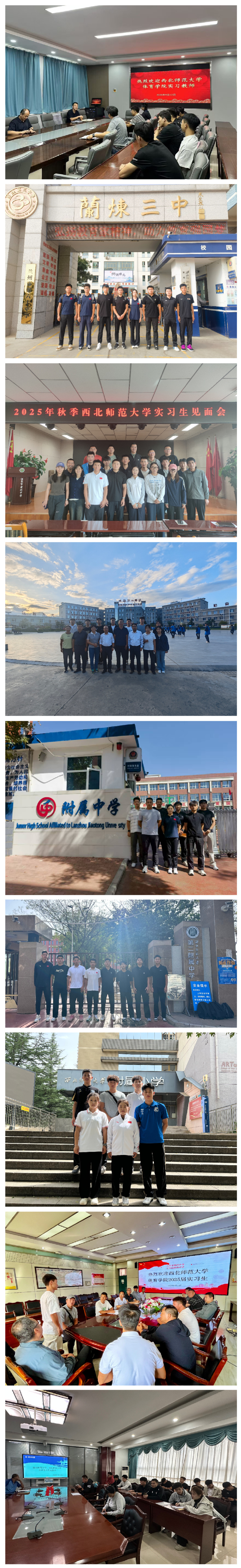 运动训练专业47名学生分体育支教志愿服务与专业实习两大模块开展实习。9月14日-16日,学院相关负责人、系主任和指导教师分三批带领实习生分赴景泰县教育局、兰州新区第六小学、兰州新区舟曲中学、兰州三中和华中师范大学安宁附属学校等单位,开启一学期的实习。