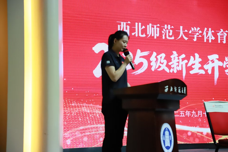 2025级体育教育1班刘亚萍同学在发言中表达了对大学生活的美好憧憬。她表示,作为一名新时代的体育学子,将牢记“知术欲圆、行旨须直”的校训,在未来的学习生活中,既要刻苦钻研专业知识,又要积极参与体育实践,努力成长为德才兼备的体育人才。2025级体育教育训练学专业硕士研究生许波同学在发言中表示,将珍惜在西北师大学习的机会,以严谨的治学态度投身学术研究,注重理论与实践相结合,为体育事业的发展贡献自己的智慧和力量。