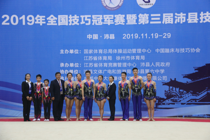 11月22日,由国家体育总局体操运动管理中心、中国蹦床与技巧协会、江苏省体育局、徐州市体育局主办、江苏省体育竞赛管理中心、沛县人民政府承办的2019年全国技巧冠军赛暨第三届沛县技巧邀请赛在沛县体育馆举行。