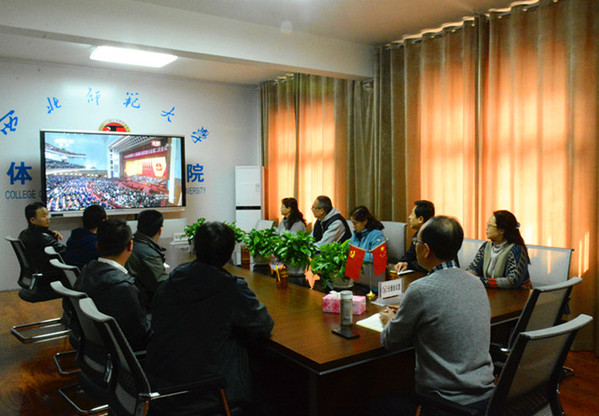3月5日上午,在学院三楼会议室,学院领导班子成员、系部所中心主任、办公室行政人员等20余人集体收听收看第十三届全国人民代表大会第二次会议开幕会,会上大家认真听取国务院总理李克强作的政府工作报告。会后大家纷纷表示,新时代面临新的挑战,我们一定要直面问题和挑战,勇于担当,恪尽职守,竭尽全力做好本职工作,为实现学院新飞跃新发展而不懈奋斗!