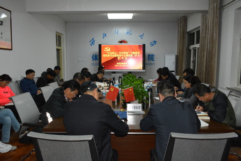 10月10日晚,学院党委在三楼会议室召开了"不忘初心,牢记使命”主题教育夜校读书会暨各党委理论学习中心组(扩大)学习会议,集中学习了《体育强国建设纲要》,《国务院办公厅关于促进全民健身和体育消费推动体育产业高质量发展的意见》并进行了研讨。领导班子成员、党委委员、党支部书记、各系部主任等20余人参加了会议,会议由赵卫东书记主持。
