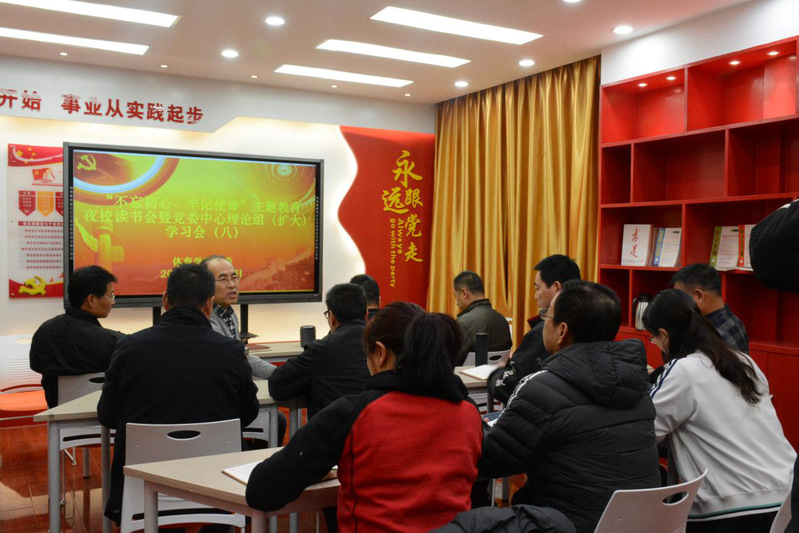 11月21日晚,学院党委在三楼党建活动室召开了第八次“不忘初心,牢记使命”主题教育夜校读书会暨党委理论学习中心组(扩大)学习会议。班子成员、党委委员、党支部书记、各系部主任等20余人参加了会议,会议由赵卫东书记主持。