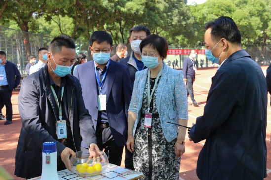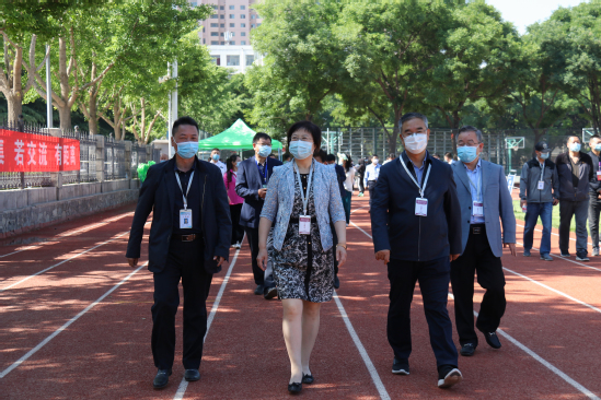 在体育类专业统一考试现场,王海燕一行沿体育高考疫情防控线路,先后深入学校西操场、东操场,实地查看了体育高考100米跑,立定三级跳远和铅球项目考试情况,并对考试使用的电子计时、激光测距等现代化技术手段做详细了解。